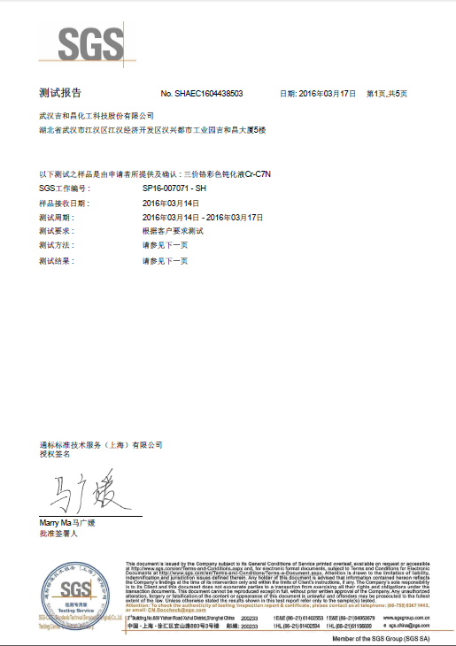 三價(jià)鉻彩色鈍化液Cr-C7N丨SGS測(cè)試報(bào)告