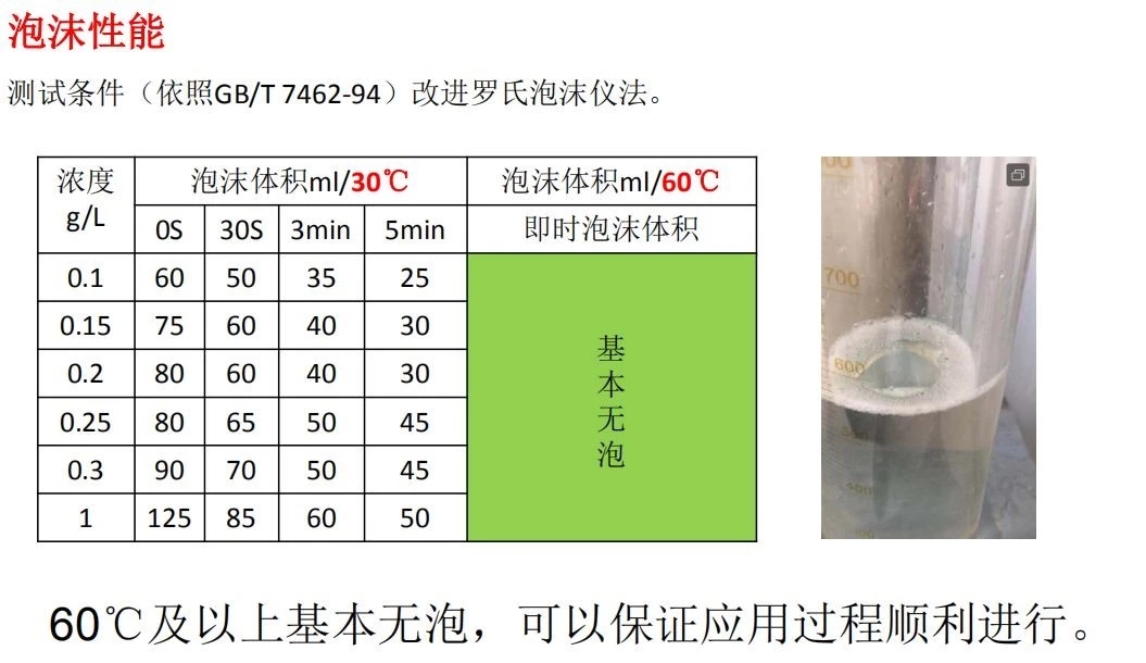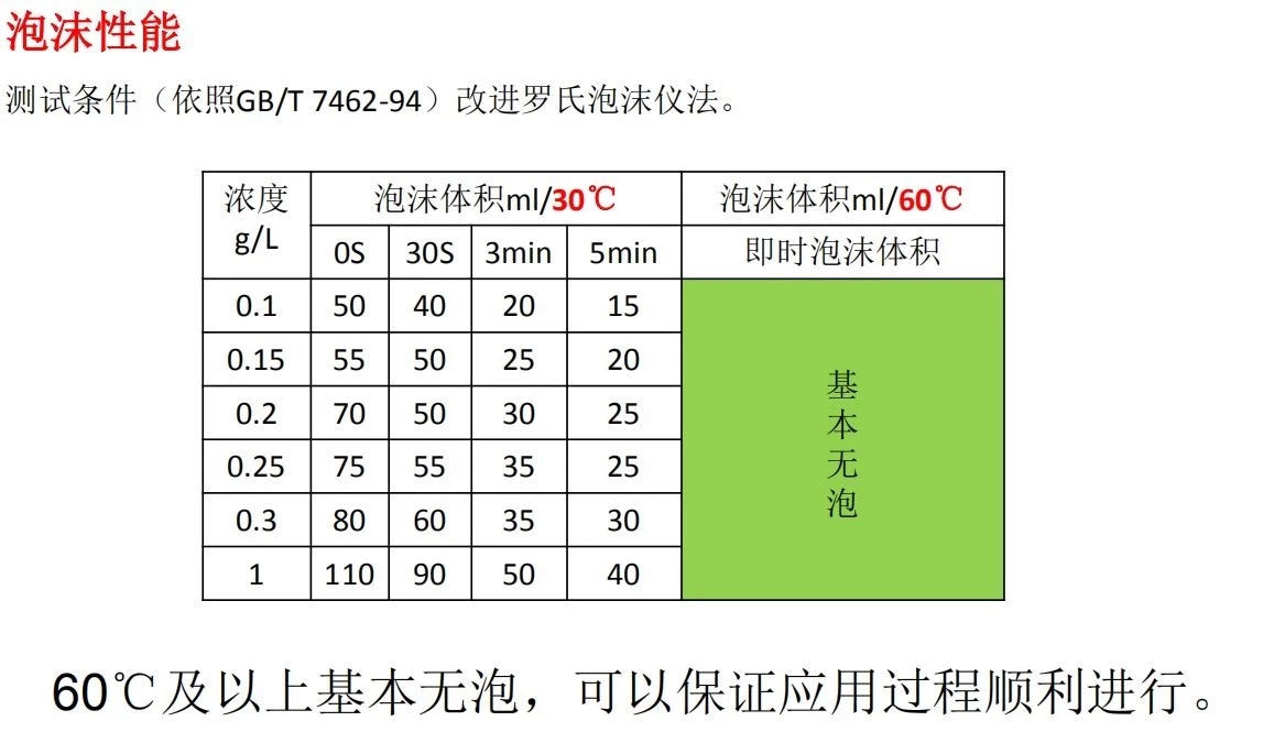 1、低泡或無(wú)泡性能、優(yōu)秀的乳化除油、潤(rùn)濕滲透及分散性。