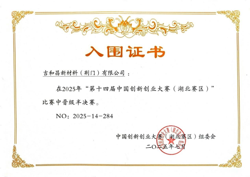喜報(bào)!吉和昌新材料(荊門)有限公司晉級(jí)中國(guó)創(chuàng)新創(chuàng)業(yè)大賽湖北賽區(qū)半決賽