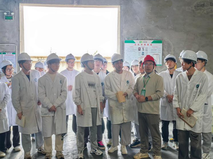 在滕總監(jiān)的引導(dǎo)下,同學(xué)們分批次進(jìn)入生產(chǎn)廠區(qū)進(jìn)行實(shí)地參觀。大家近距離觀察了生產(chǎn)裝置、整潔規(guī)范的作業(yè)流程,詳細(xì)了解了產(chǎn)品從原料投入到成品產(chǎn)出的全過程。